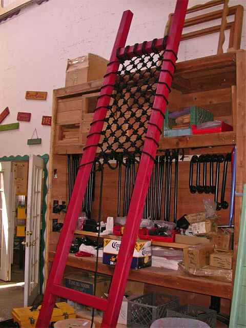 Same with the giant Rope Net Ladder – Armando will finish weaving the netting and then it too will go to site.
